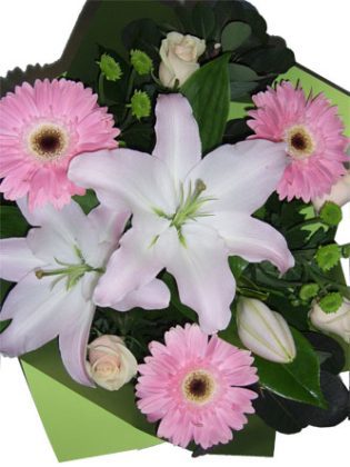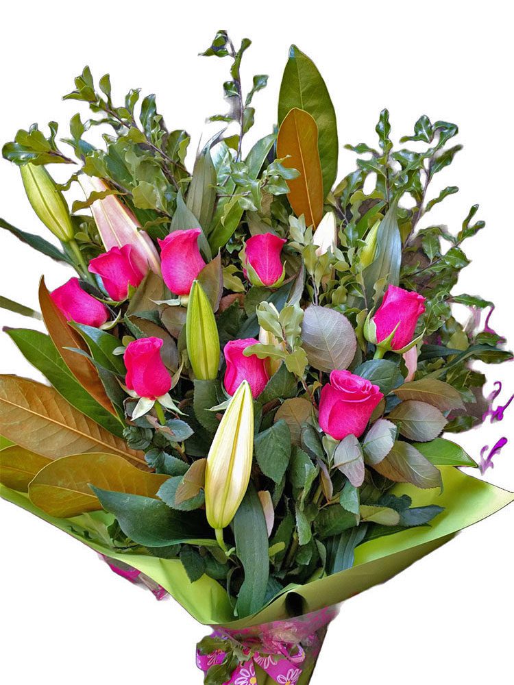 Lovely Pink roses of the day and pink lilies flower bouquet to cheer up anyone’s day.